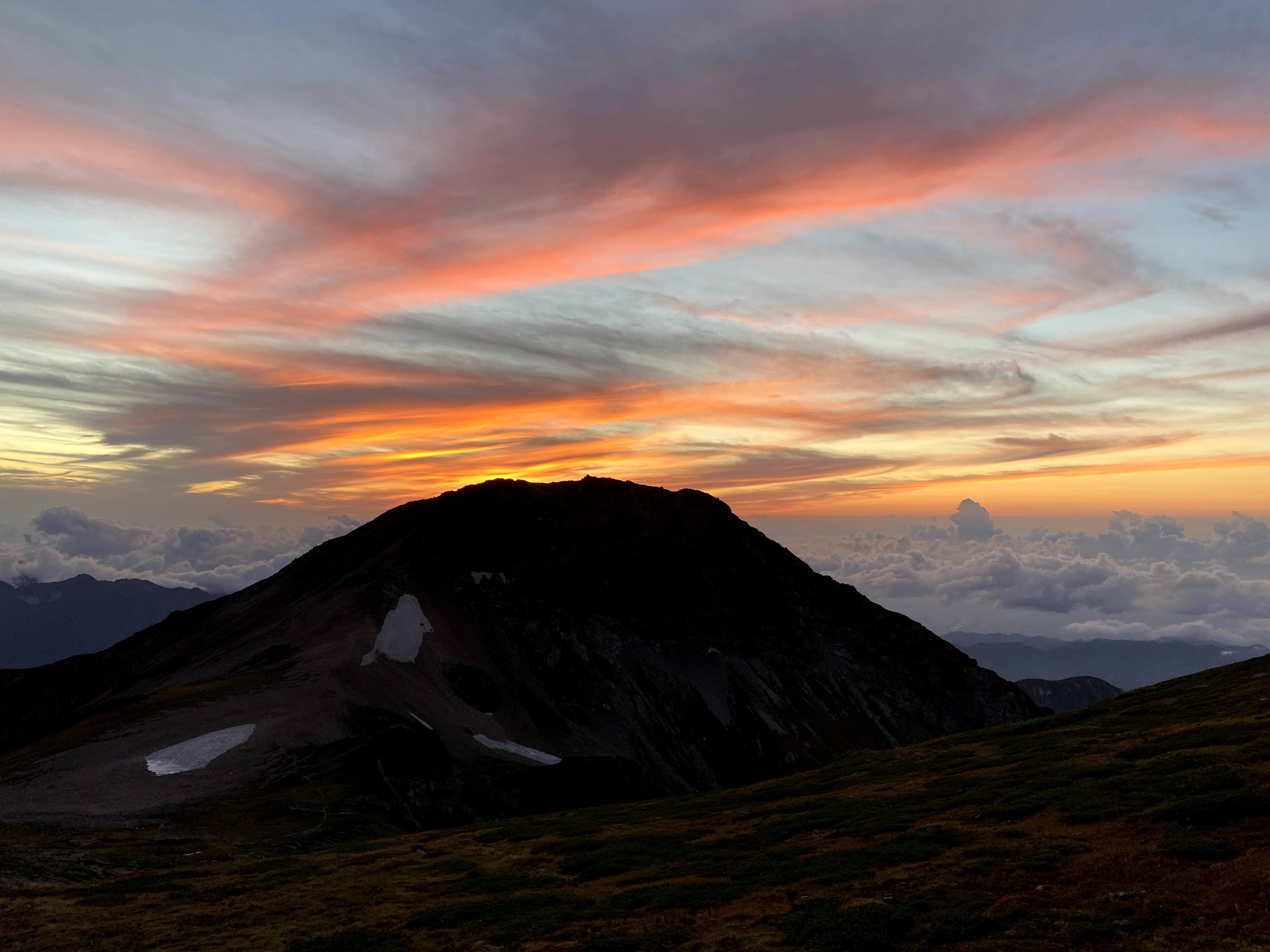 2日目に白馬岳に登って白馬山荘に到着。夕日がきれいでした。