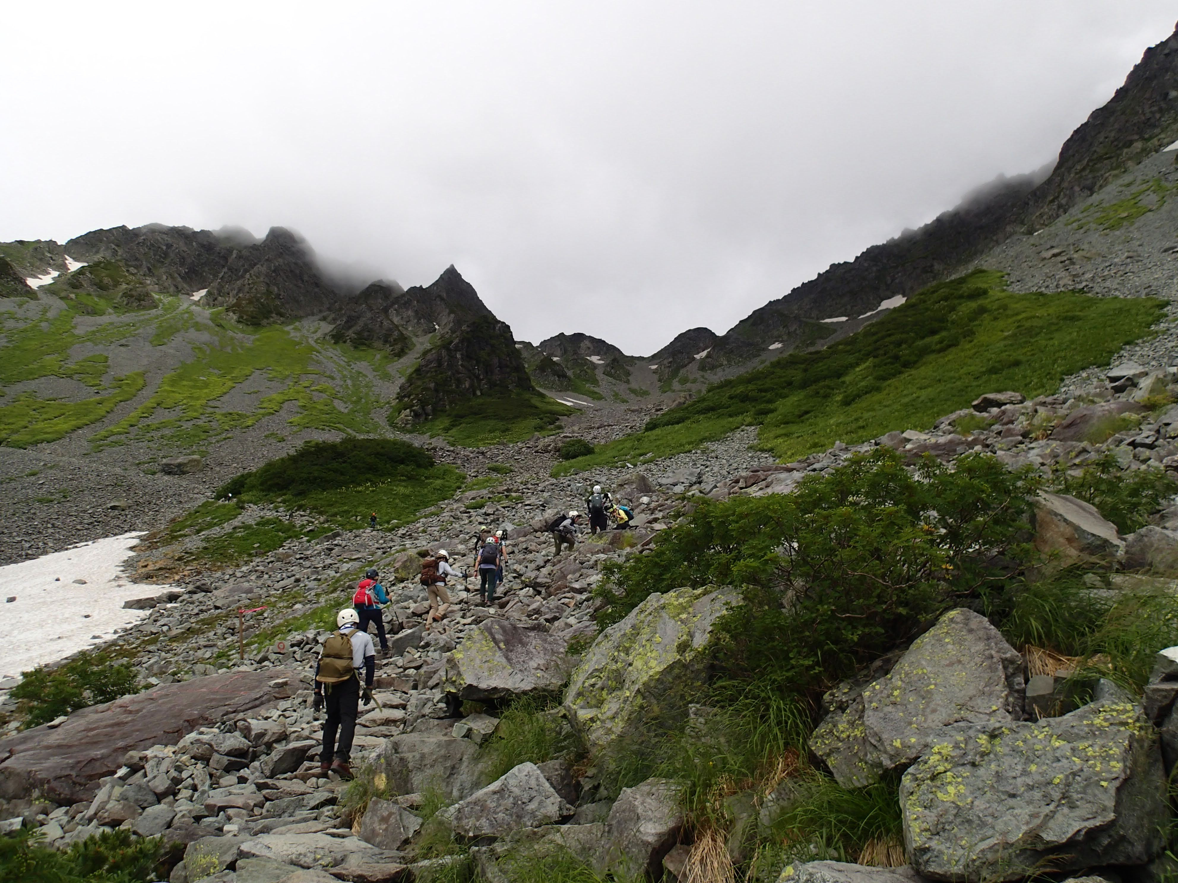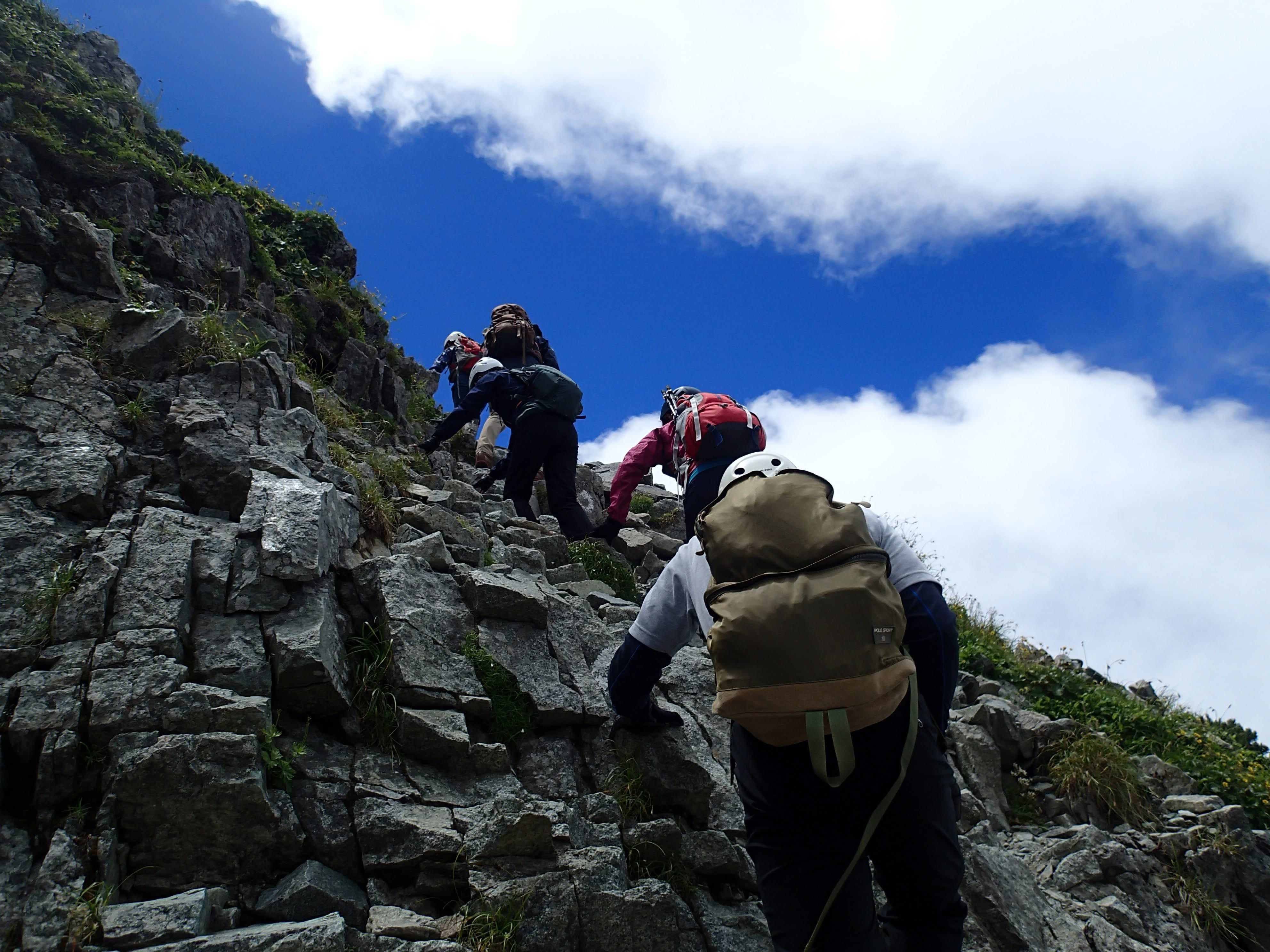 皆さんかわいらしい高山植物にも目を向けて夏の北アルプスを楽しみながら、一歩一歩慎重に岩場を登っていきました。