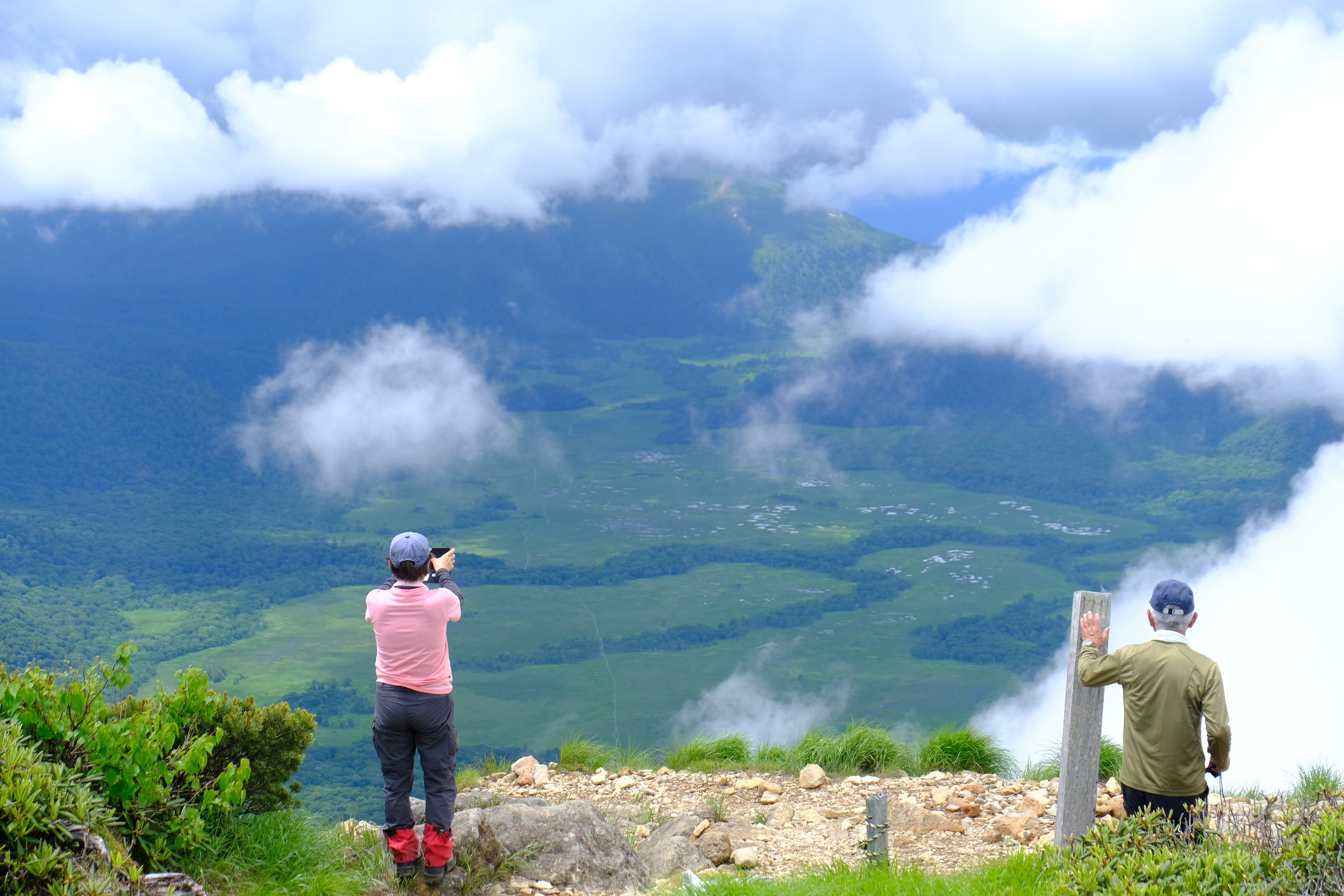 集中して登る合間にふっと呼吸を整え後ろを振り向くと、そこには縦断してきた尾瀬ヶ原が広がっているのです。