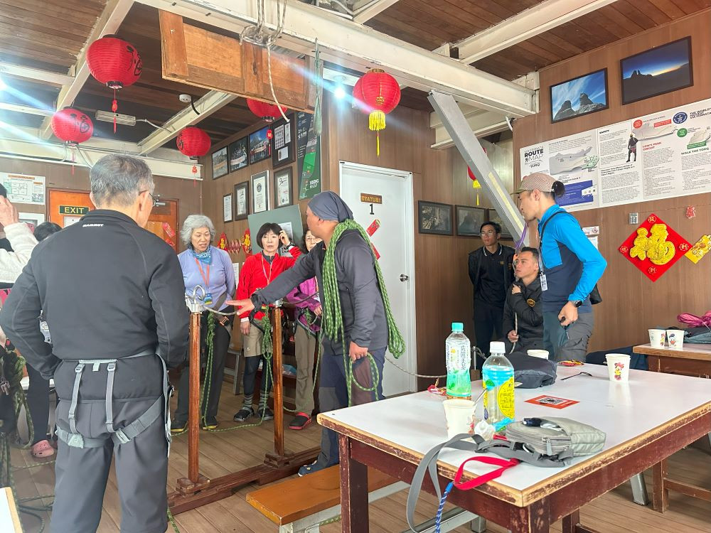 山小屋内で、ヴィアフィラータについて全員参加のレクチャーを受けます。