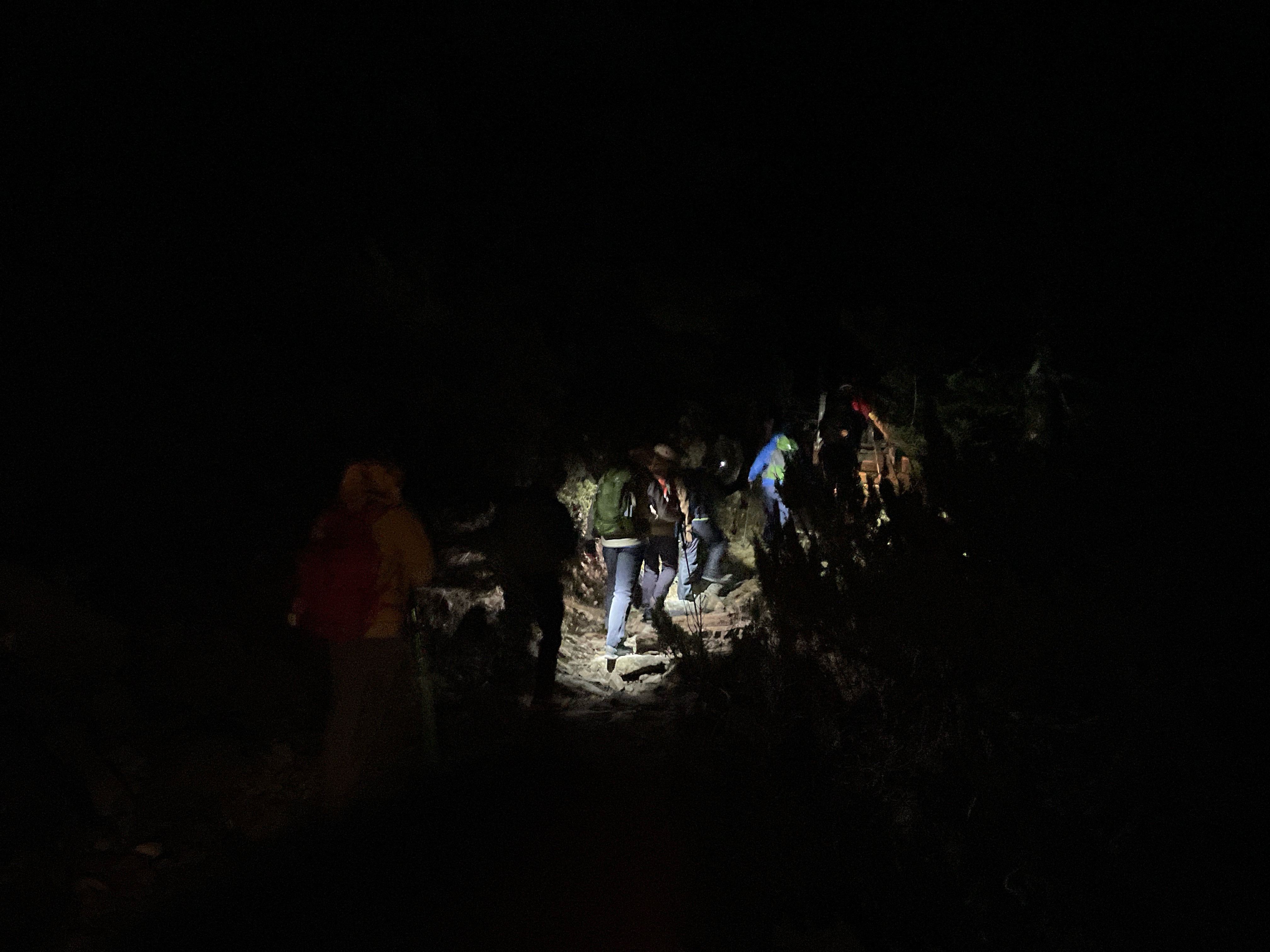 しっかり準備をして、深夜に山頂に向かって出発です!