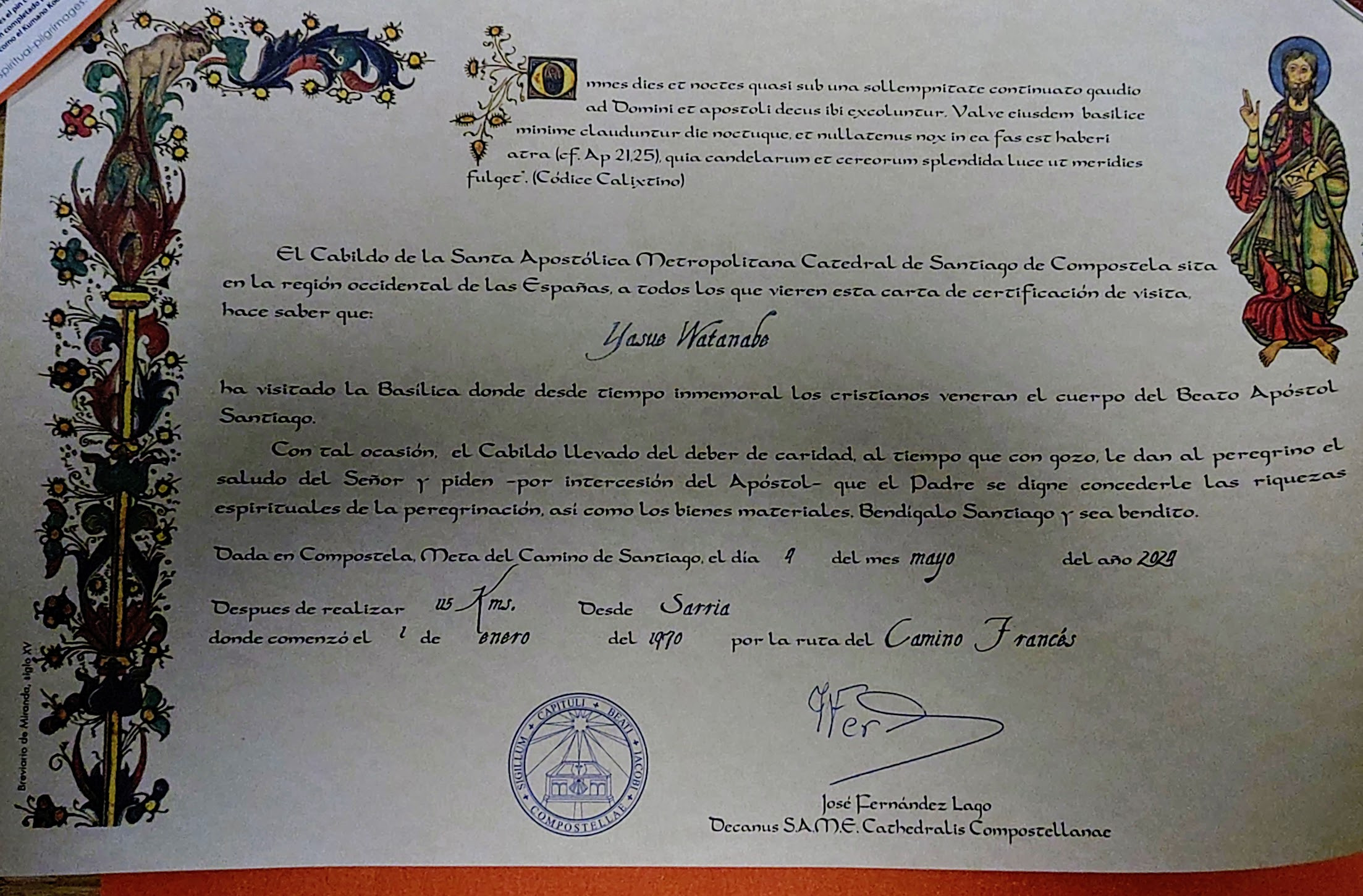 きっと大聖堂の中で今日巡礼を終えた人たちの名前が読み上げられ、その中に私たちのグループも呼ばれていたことだろう。