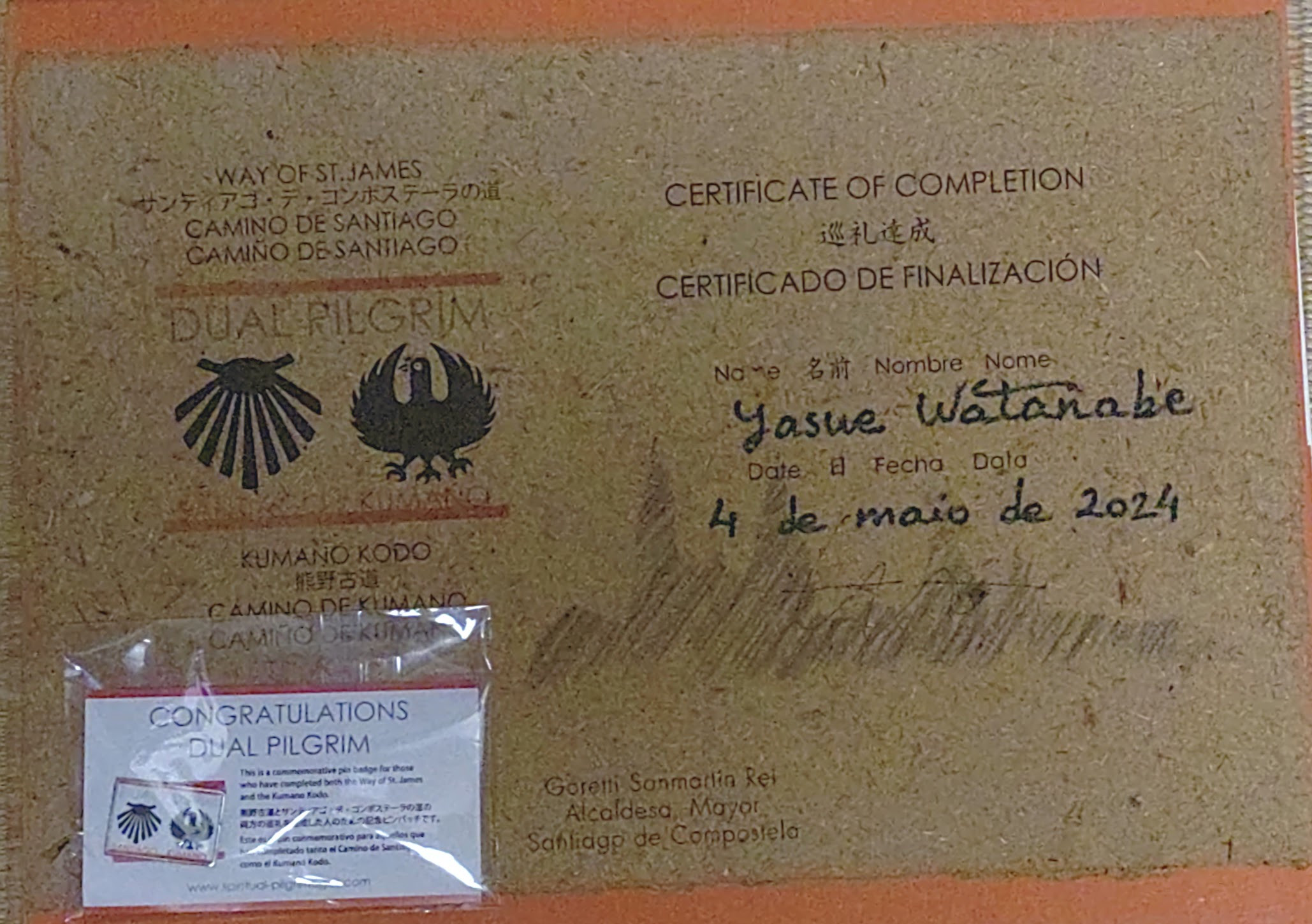 両方を達成した「共通巡礼者(DUAL PILGRIM)」の方には今年2024年はちょうど世界遺産登録20周年記念の為