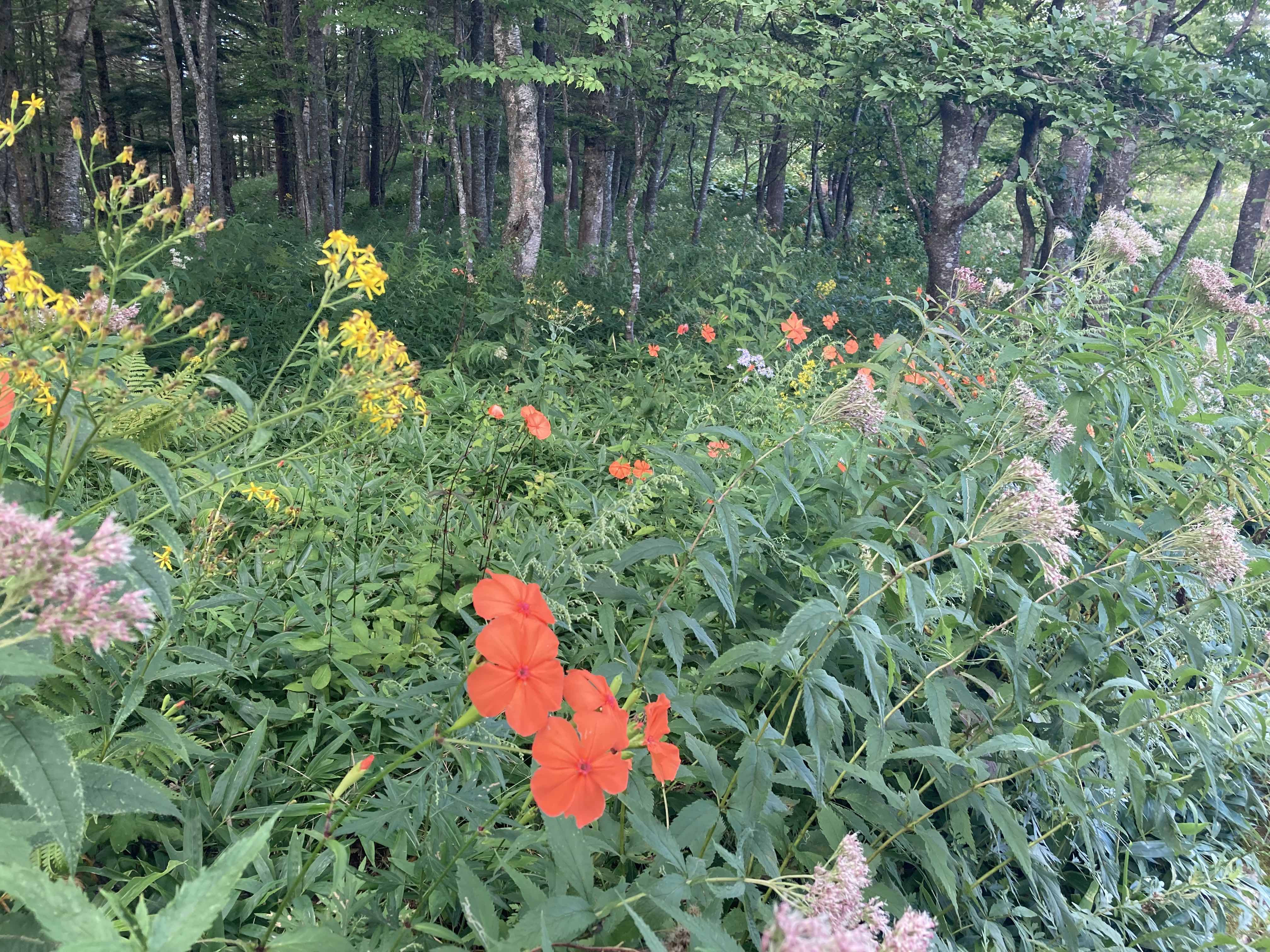 この時期(8月下旬)は紫色のサワギキョウ、ピンクのヤナギランやハクサンフウロなど、色鮮やかな花々を楽しめます。