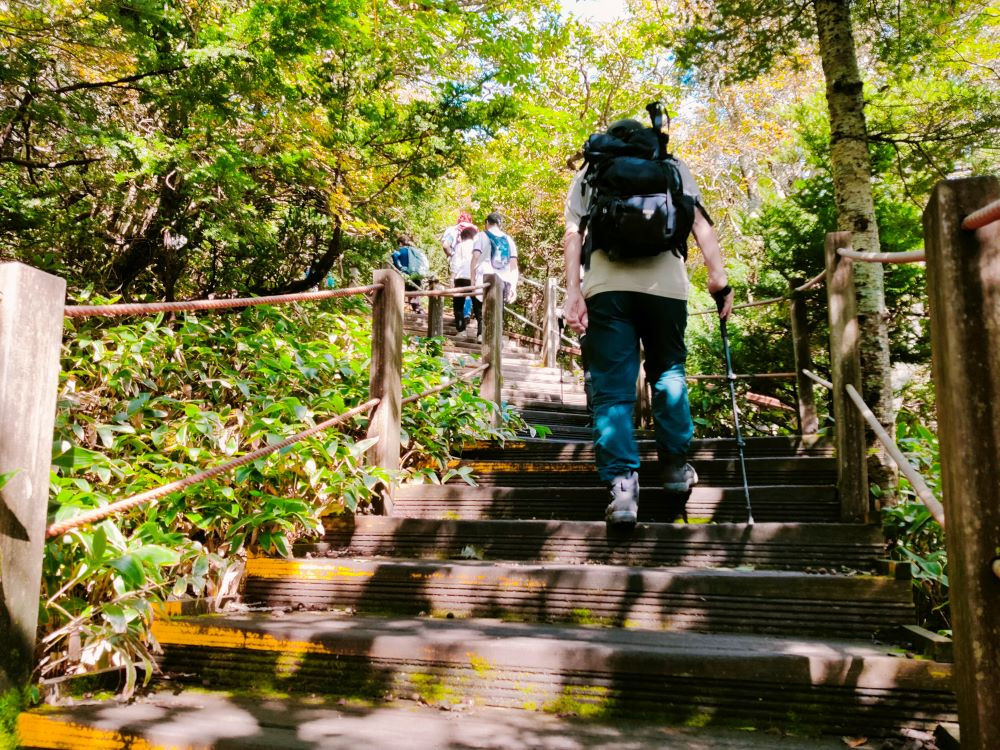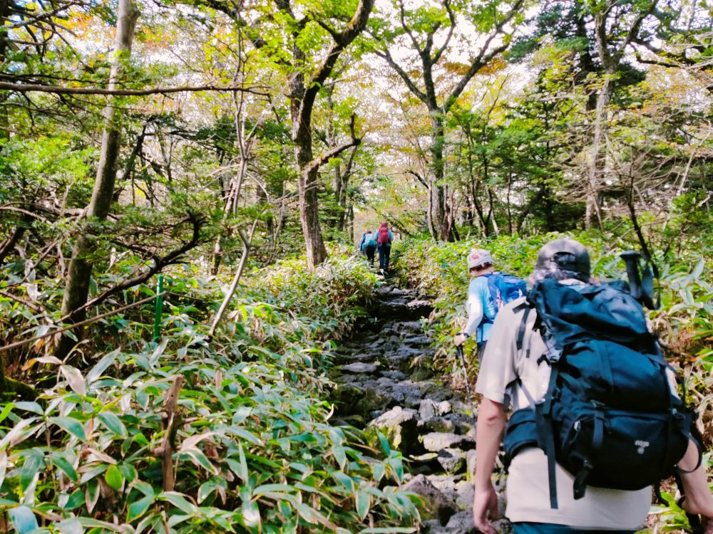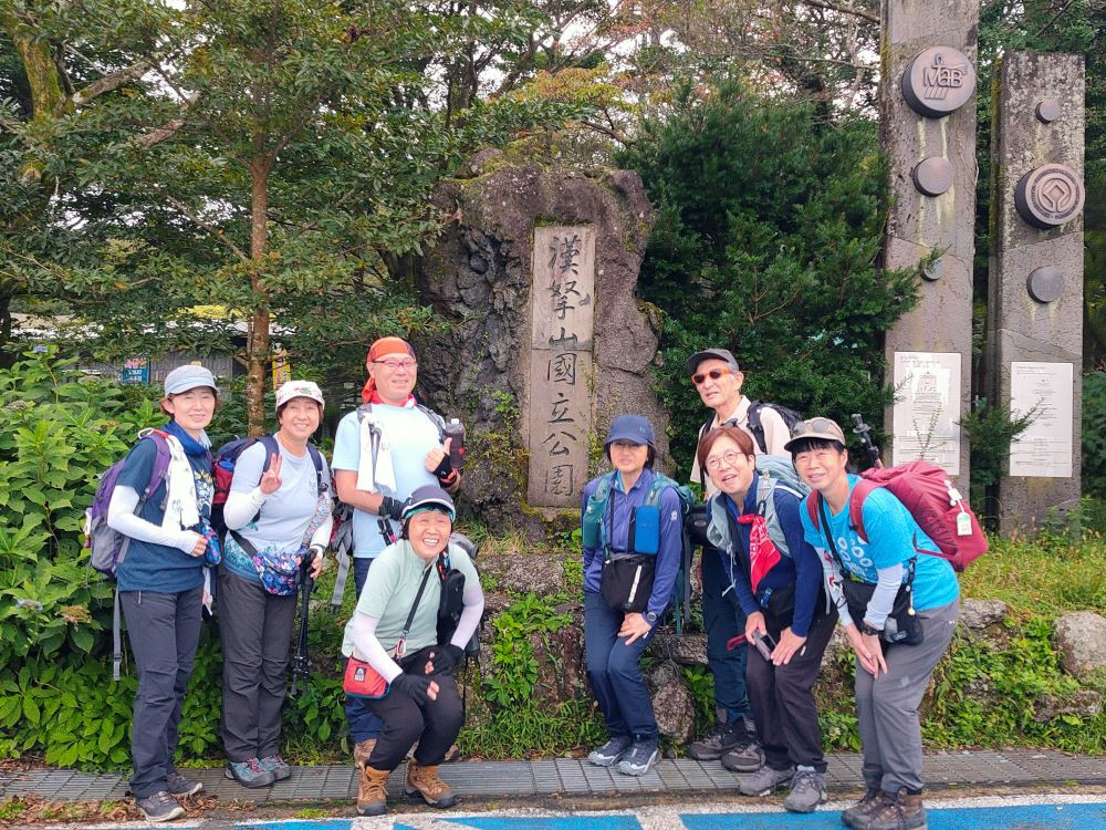 登山ルートはいくつかありますが、今回は城板岳ルート(約9km)で山頂を目指し、観音寺ルート(約8.7km)で下山します。