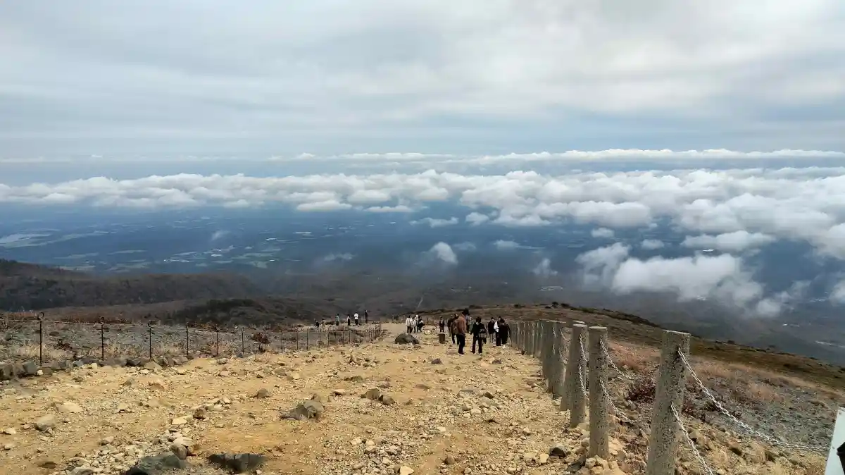ところが、那須岳ロープウェイを降り登山口に立ってると、拍子抜けするほどの無風でした。まるで奇跡のような穏やかな天気。
