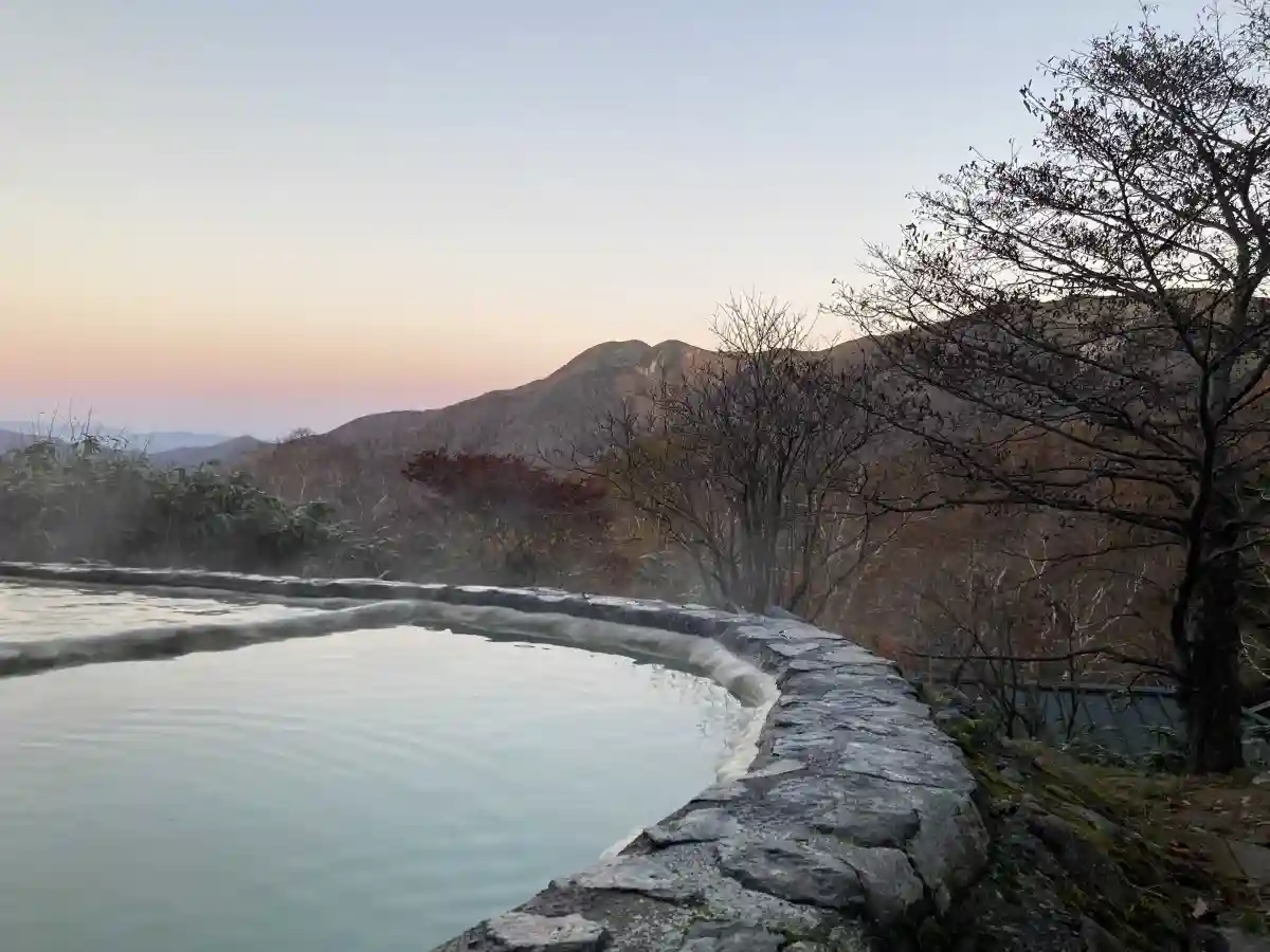 中でも煙草屋旅館の名物といえば野天風呂。囲いもなく、その名の通り野も天も見渡すことができる野外のお風呂です。