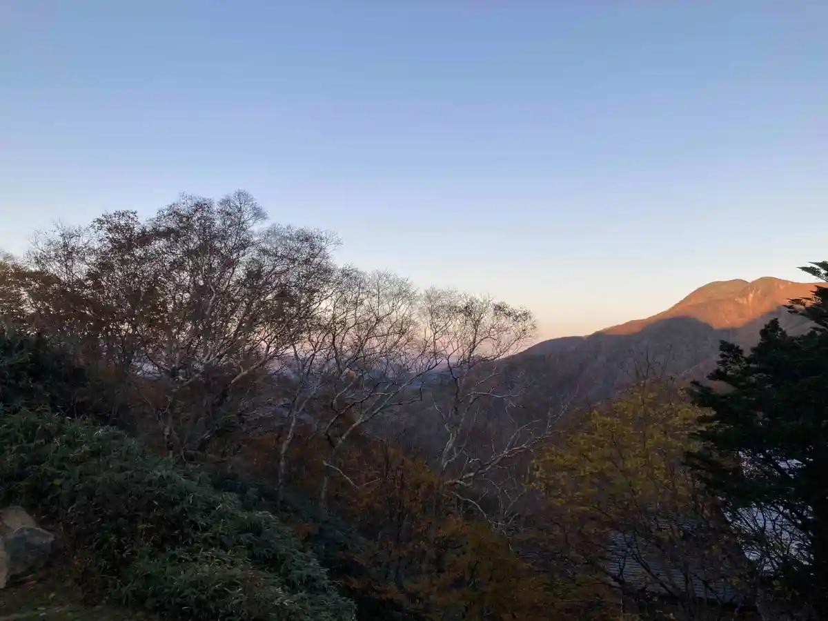峰の茶屋を越えてしばらく下ると広葉樹林帯に入ります。こちらも紅葉が見頃で黄色く染まった葉を太陽が照らし、登山道全体がなんとも言えない暖かい光に包まれていました。