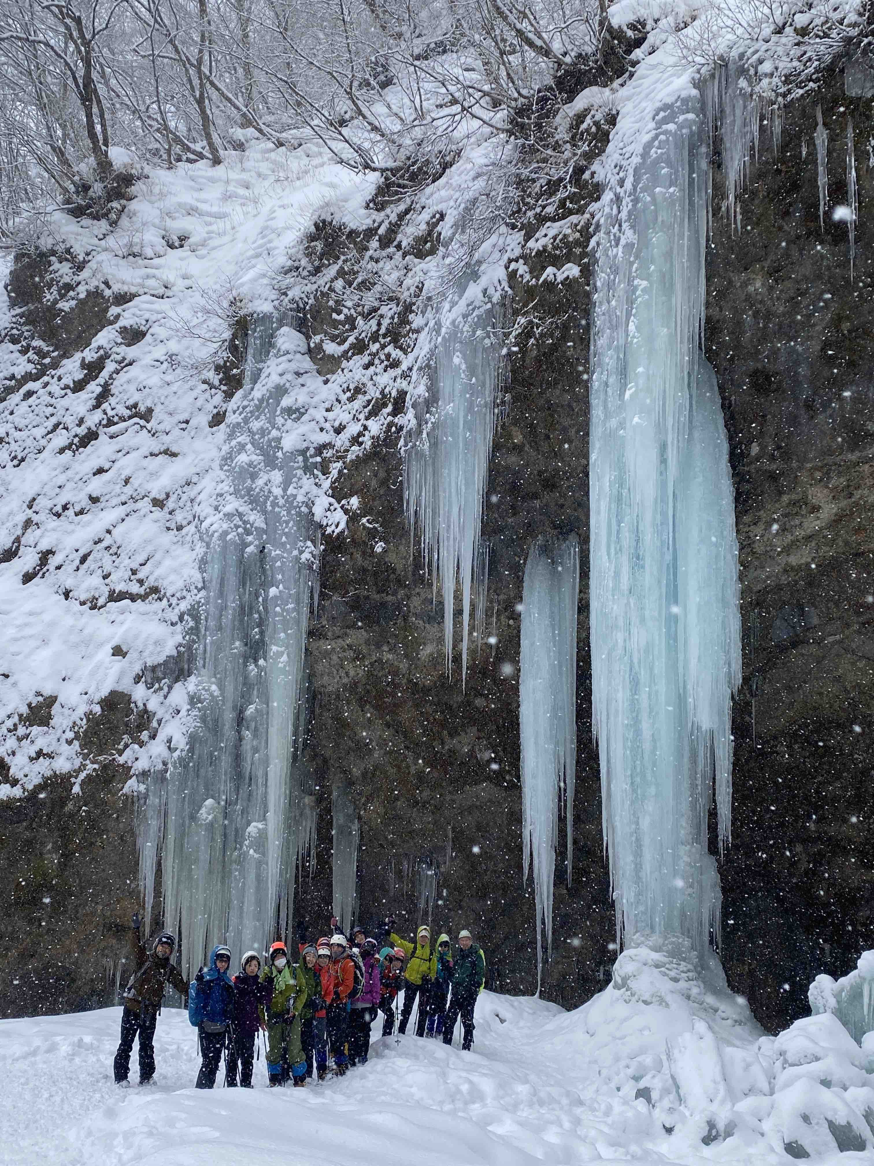 今回も、初めて雪山に挑戦するお客様や、かなり久しぶりにアイゼンを履くというお客様もいらっしゃいましたが、無事全員で氷瀑に出会うことができました。