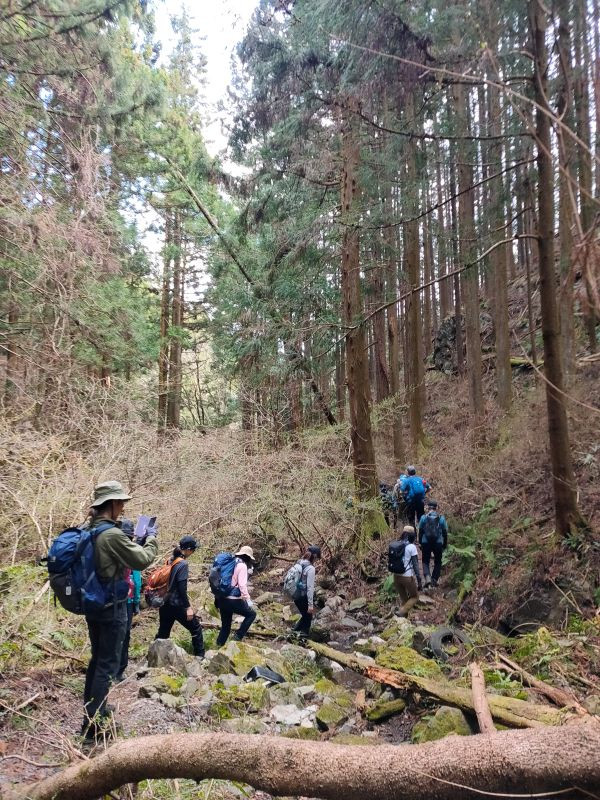 楠元ガイドによる登山について急登!渡渉!ありのルート説明に皆さんドキドキしながら
