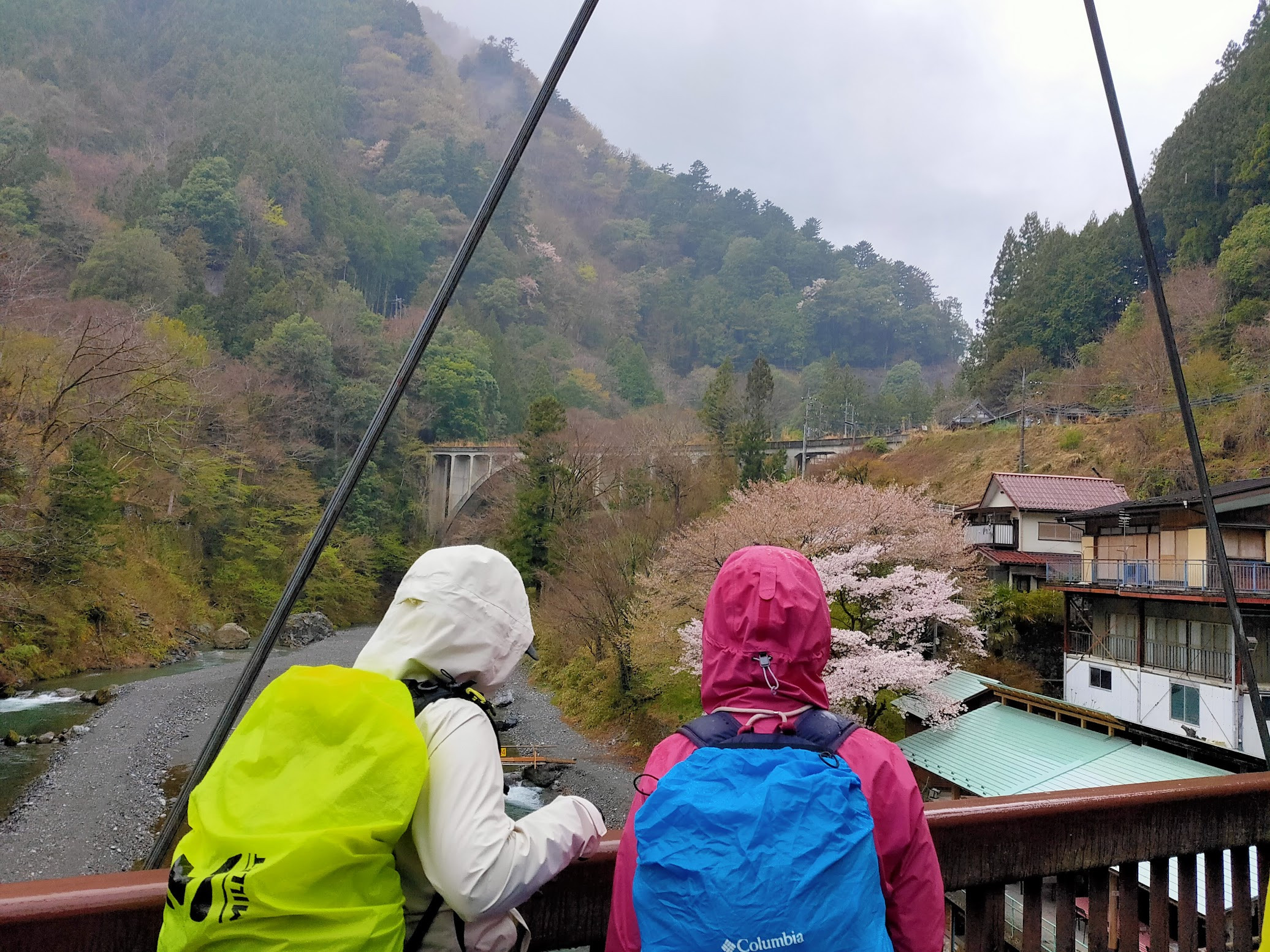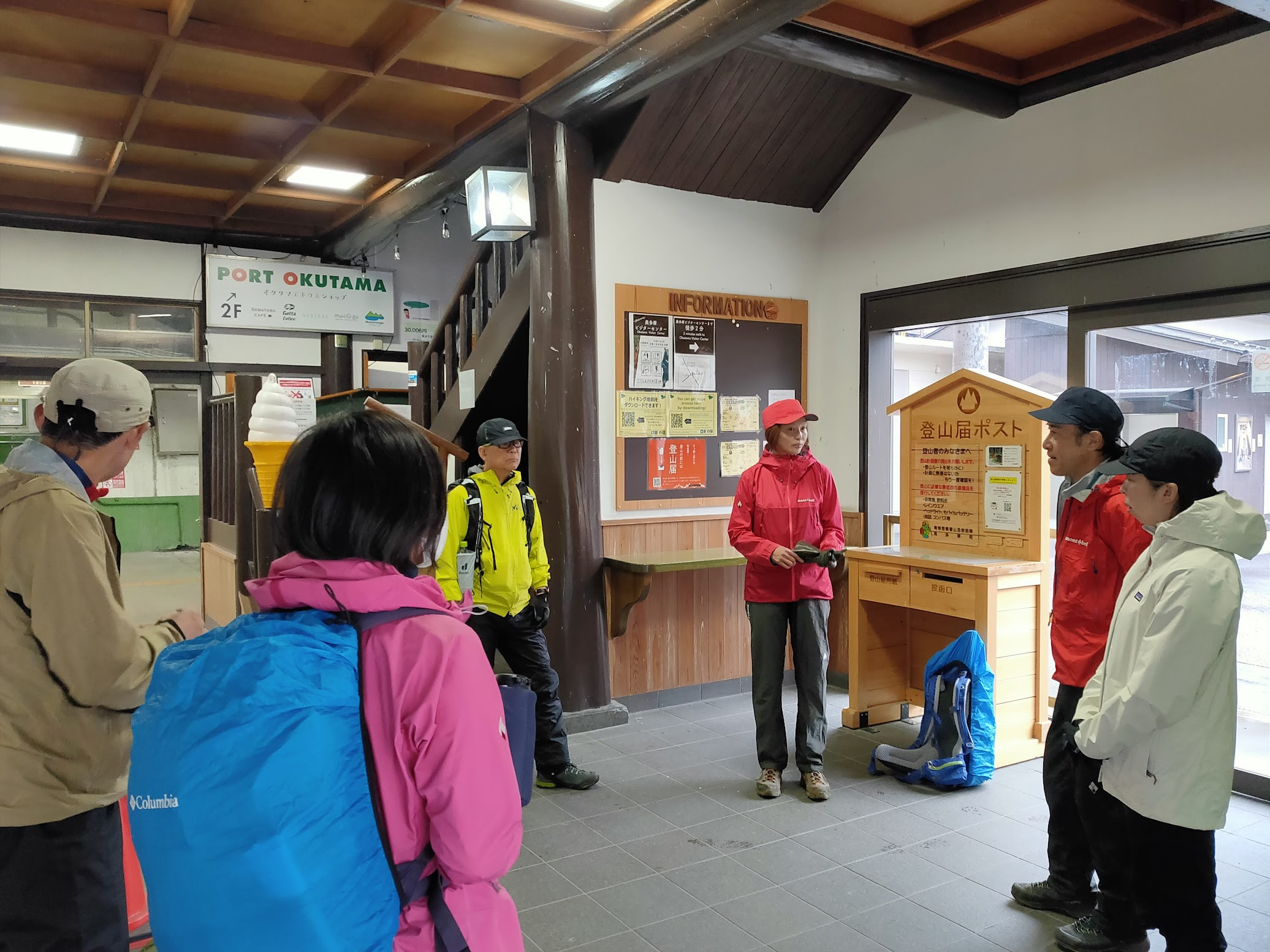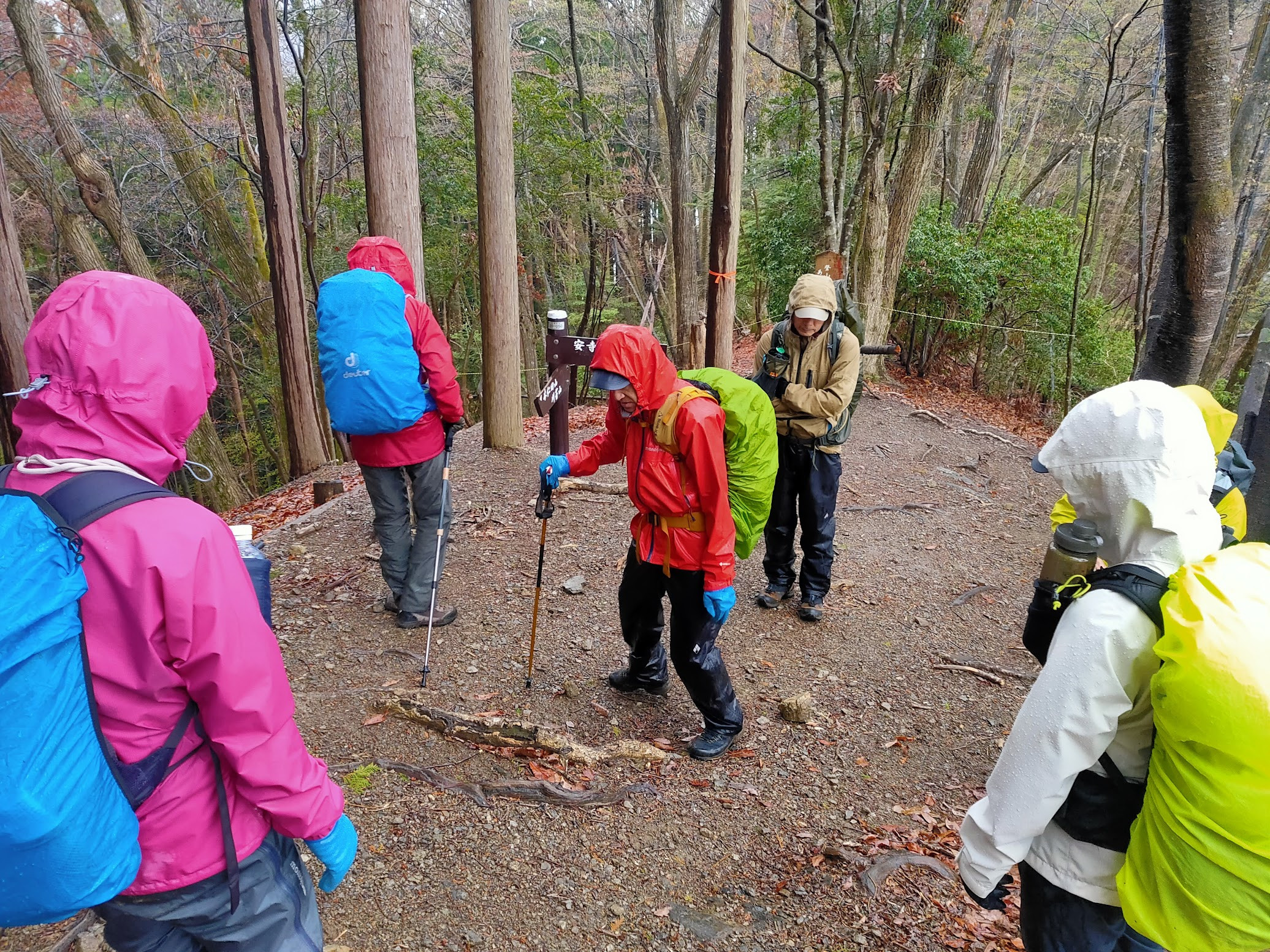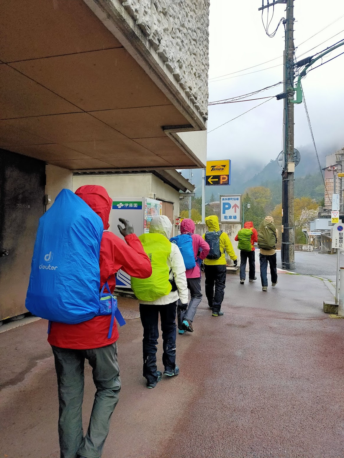 奥多摩駅に集合した時には、すでにしとしとと雨が降り始めていました。ここで、雨の日登山の必須アイテム、レインウェアの出番です!