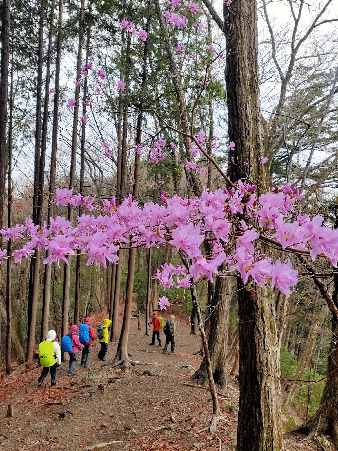 登山道までの道のりでは、春の桜と秋の椿が同時に咲き誇るという、珍しい季節外れのコラボレーションが。