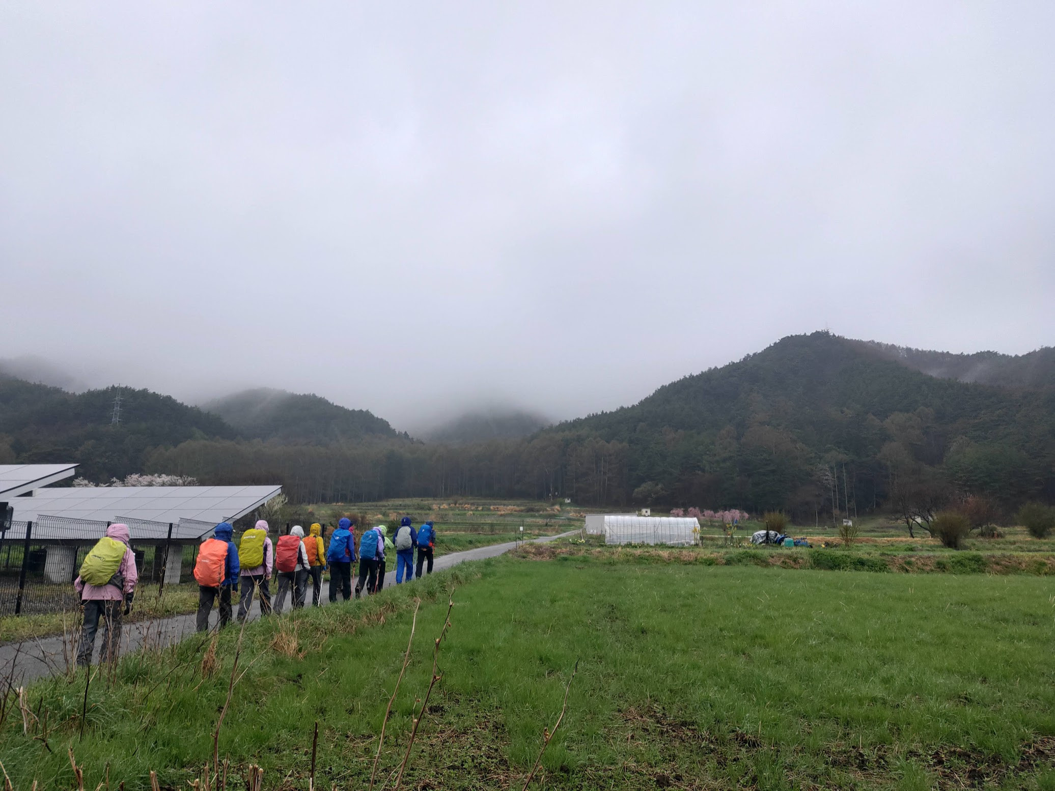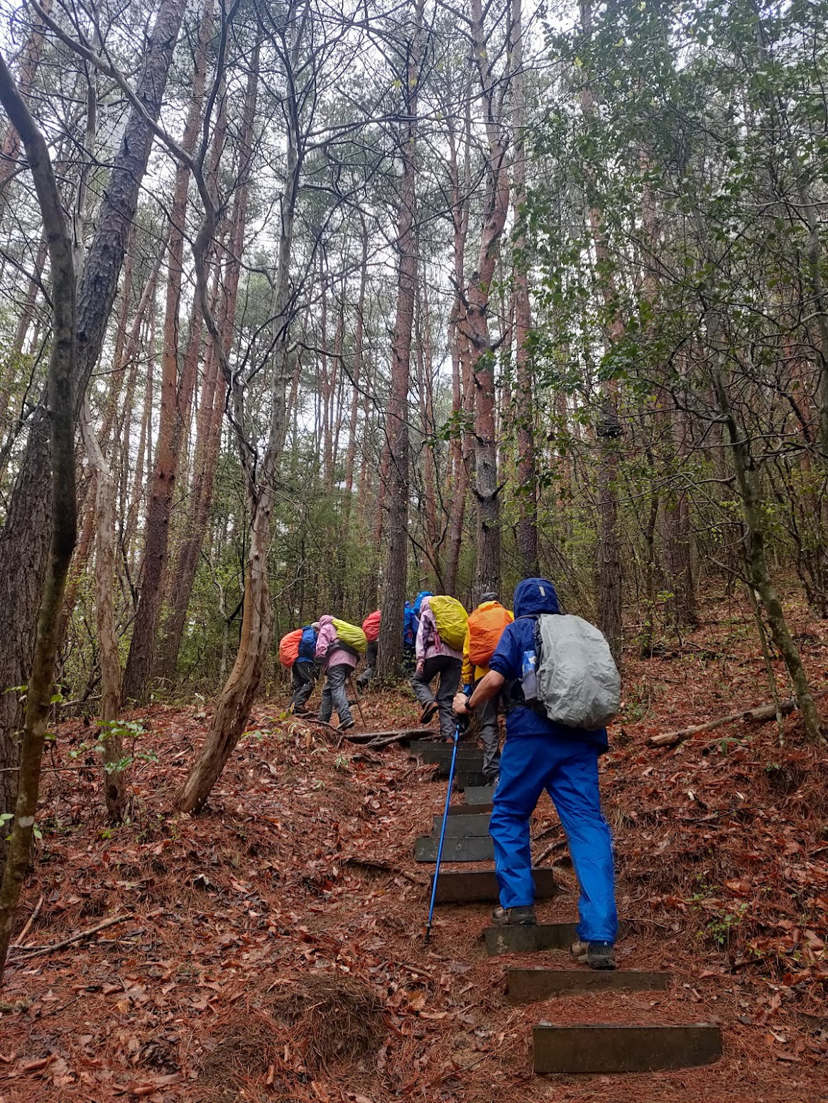 小雨の中、霧がかった山頂を目指して2日目スタートです!