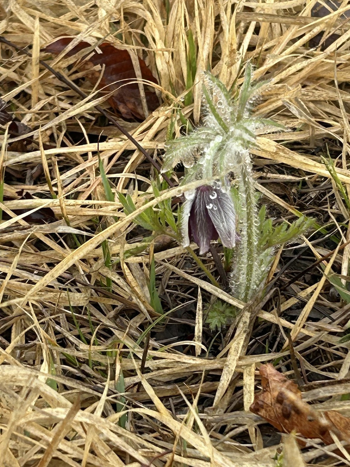 山頂にはオキナグサが3輪、雨の中しっかり咲いていました!