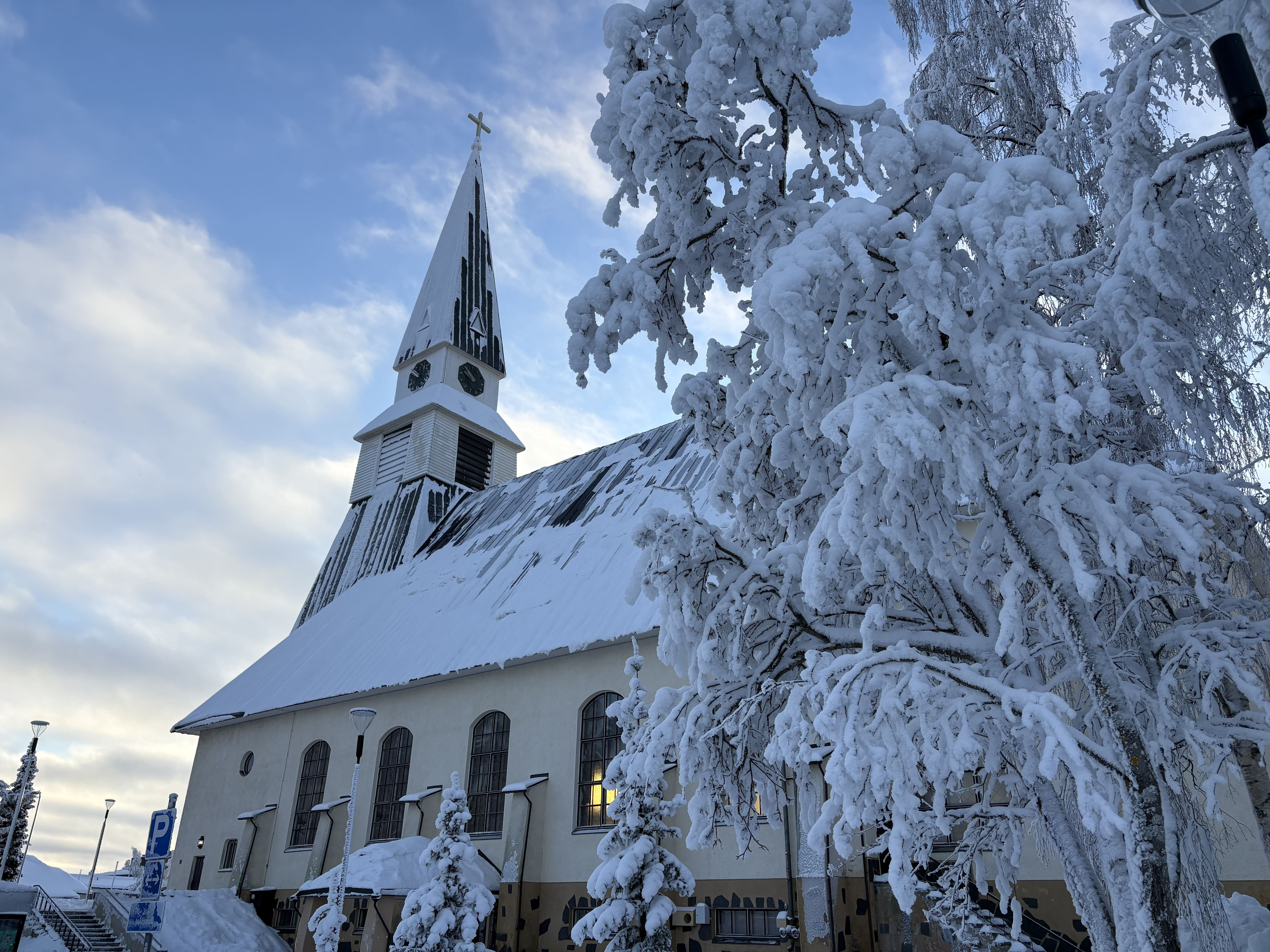 荷物を受け取り、貸し切りバスでロヴァニエミ教会へ