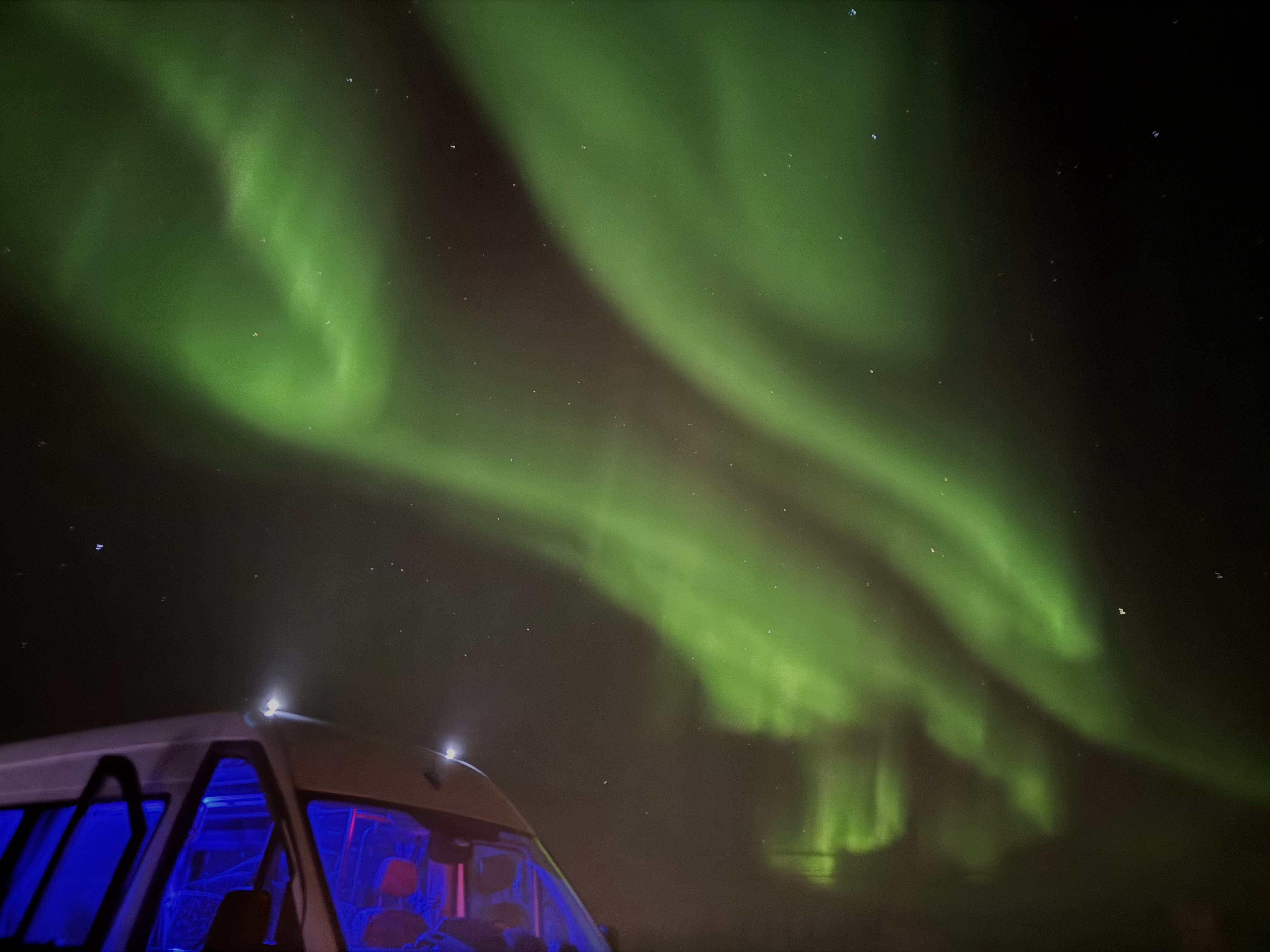 2026年から開始されたオプショナルツアー。2026年は全員参加されました!日本語スタッフ同行で、光害の少ない郊外のコタへ向かいます。その日のコンディションに合わせてオーロラを探しながら案内してくれるため、見れる確率はグンと上がります!