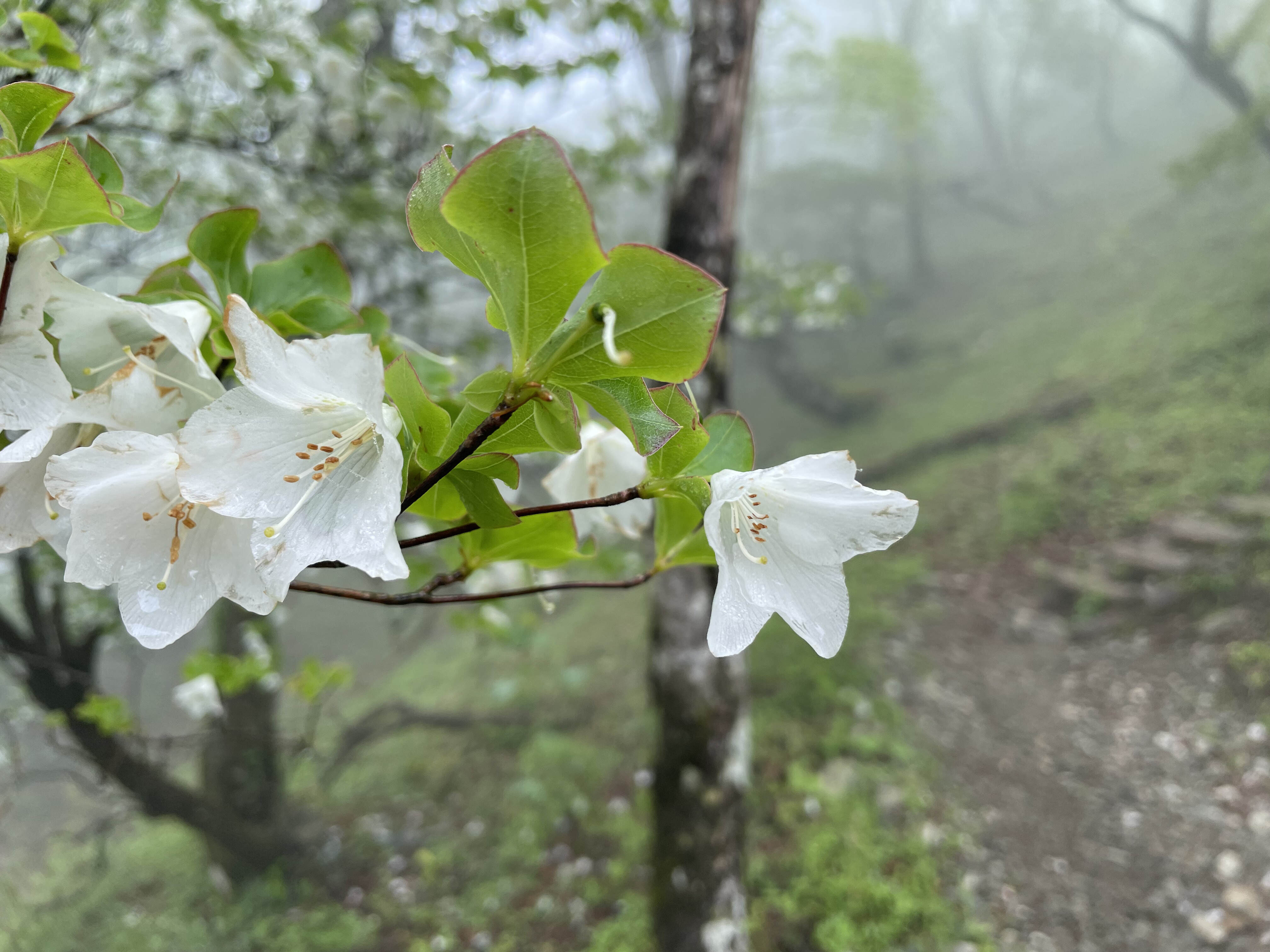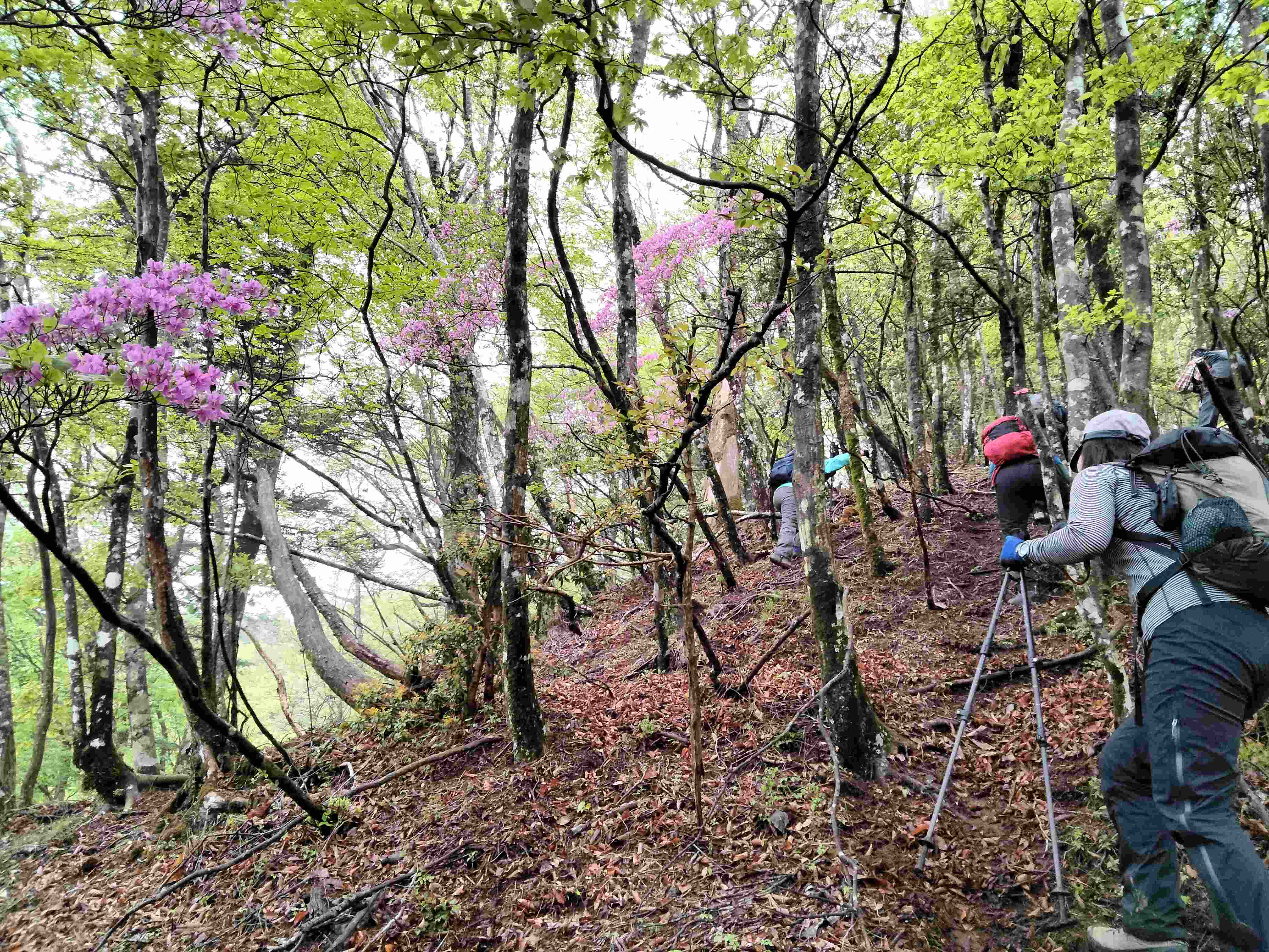 この山の見どころは何といっても、新緑の5月下旬から6月上旬に咲く「シロヤシオ」でしょう。真っ白な花が綺麗なツツジの仲間でつい見惚れてしまいます。
