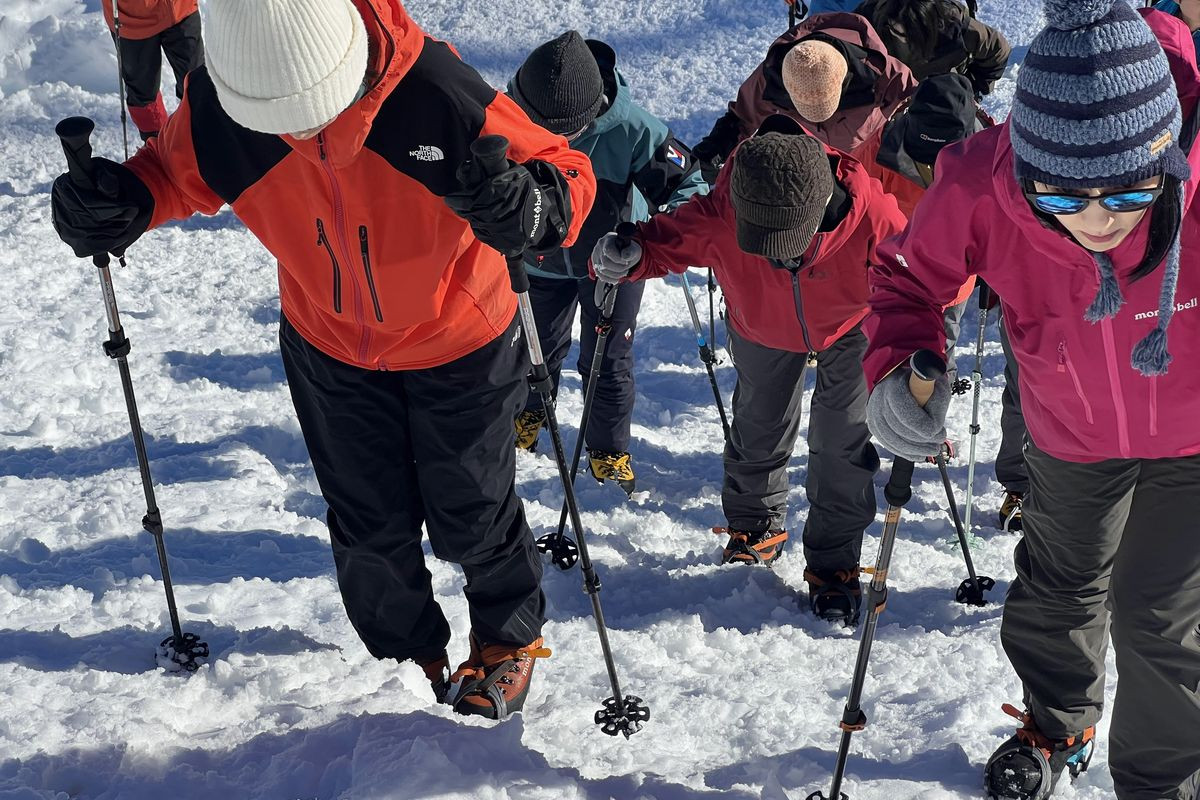 最初のうちは、アイゼンを履いた状態での歩行レッスンを受けるのもよいでしょう。道具をそろえるだけではなく、最初に「正しい使い方」をしっかり学ぶことも重要です。