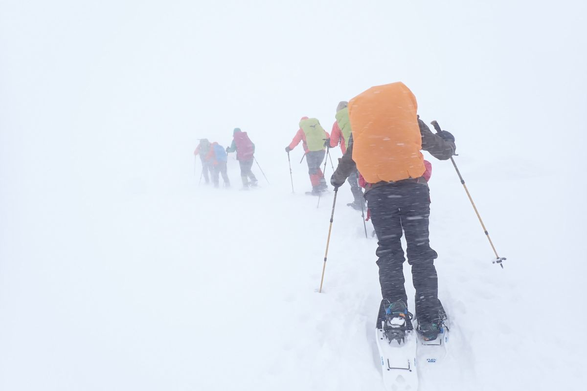 雪の上の歩行は想像以上に疲れるものです。寒さで体力が奪われるスピードも速いでしょう。